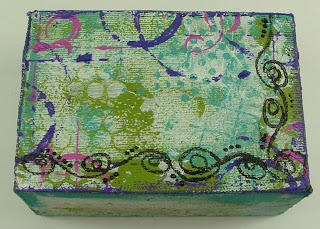I started off with a wooden block (Chunky ATC sized, but that was coincidence rather than design, it was the first thing that came to hand!). I then covered it with Sticky Backed Canvas . Yes, I could have just painted onto the wood, but I really like the canvas texture!