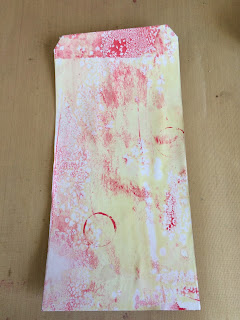 I stamped the large heart from The roses are red plate onto adhesive canvas i had already painted with the candied apple from gelli plate, which is what is giving the heart that lovely mottled effect.
