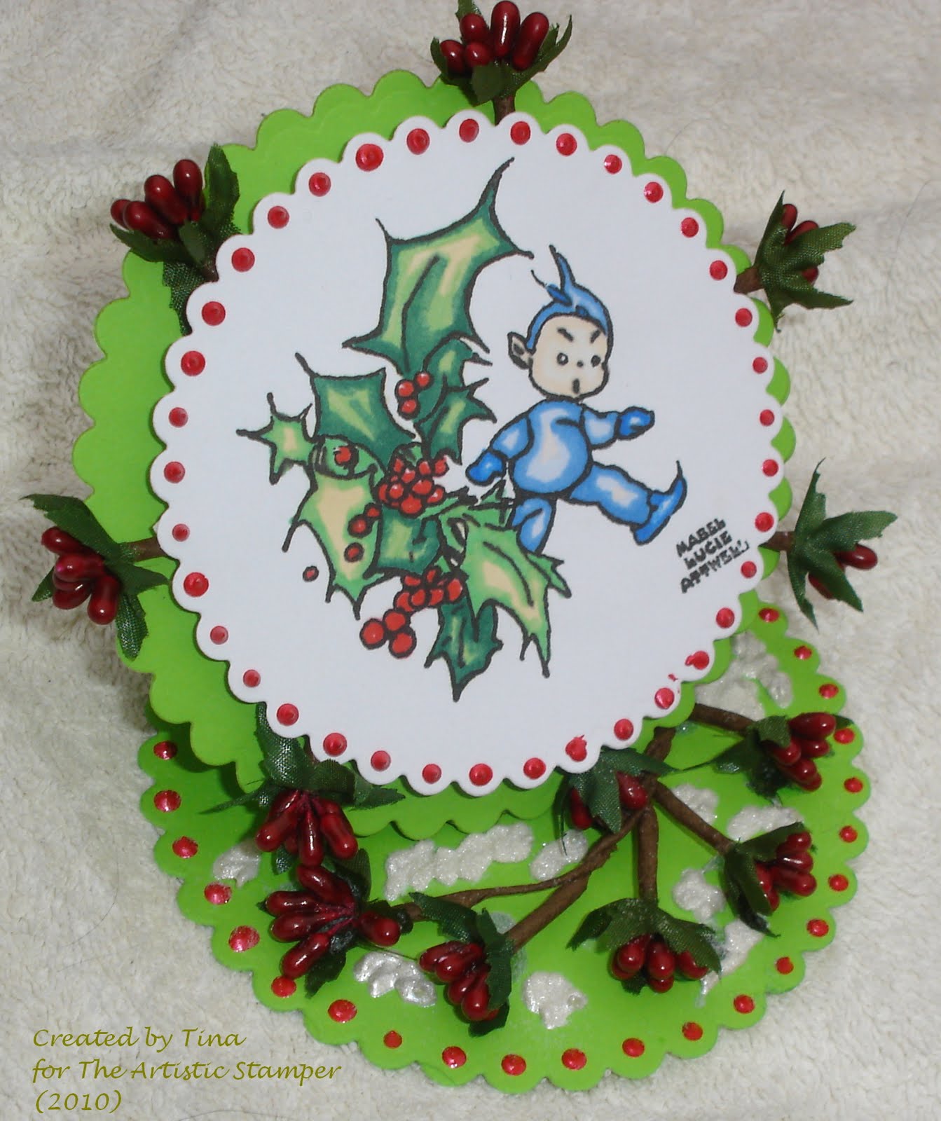 I have then added some berries from my stash and placed them around the image as well as using them as a buffer for the easel card.