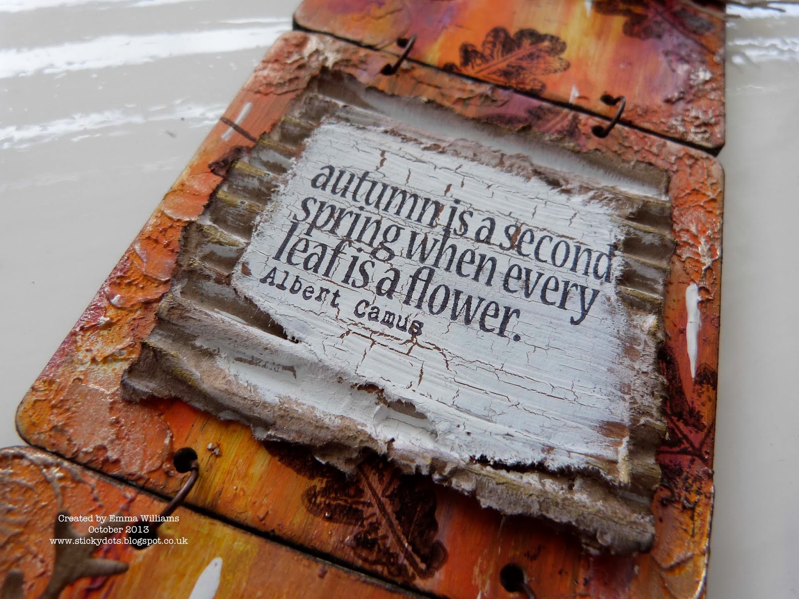 Completely gorgeous, Emma - absolutely love the shabby corrugated frame for the sentiment, gorgeous colours, and the amazing dimension of your autumn gatherings. Must get that die out again!!