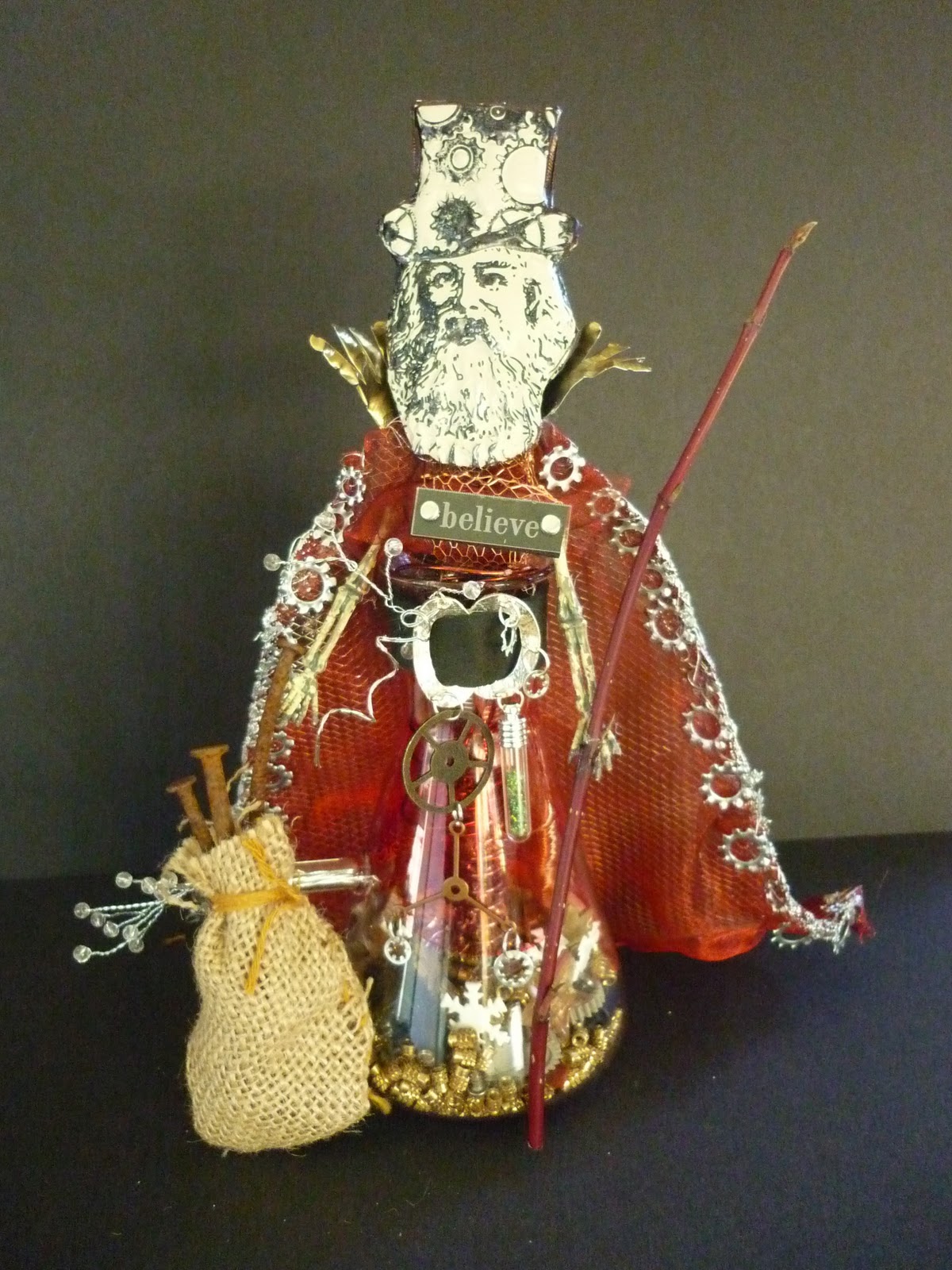 With Santa in one hand and a bottle in the other, it was obvious that the shape was perfect for a Santa shape and so this Christmas Steampunk Decoration evolved.