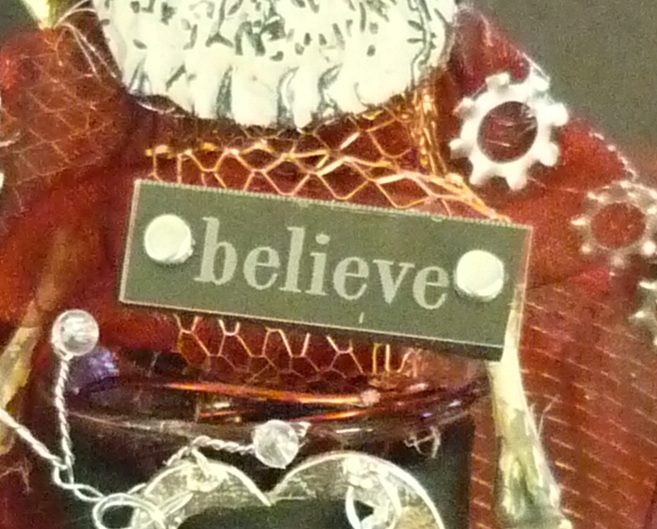 Remnants rubs (tim holtz rubons) "believe" and star.