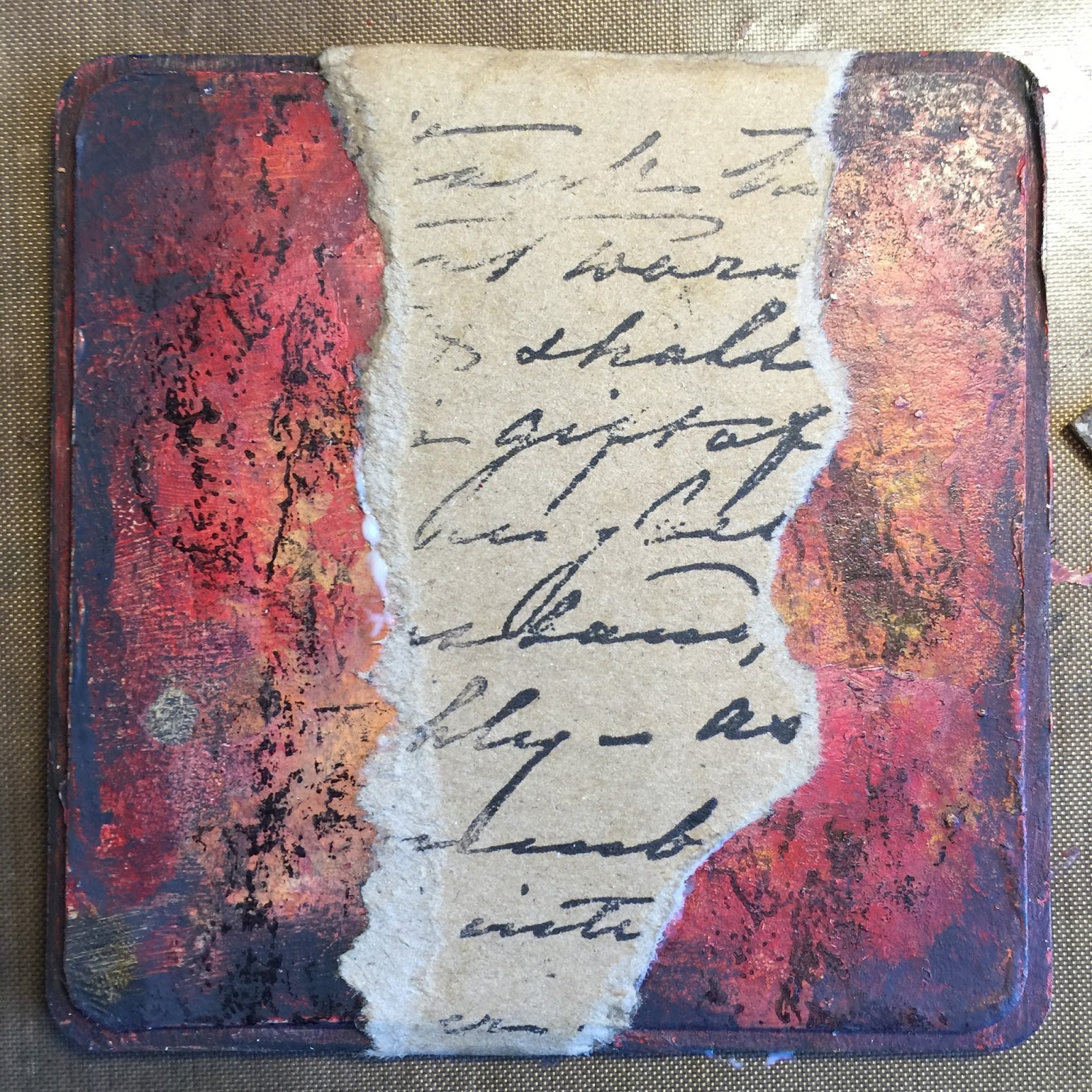 I tore a strip of the craft paper off and stamped with the calligraphy matt
