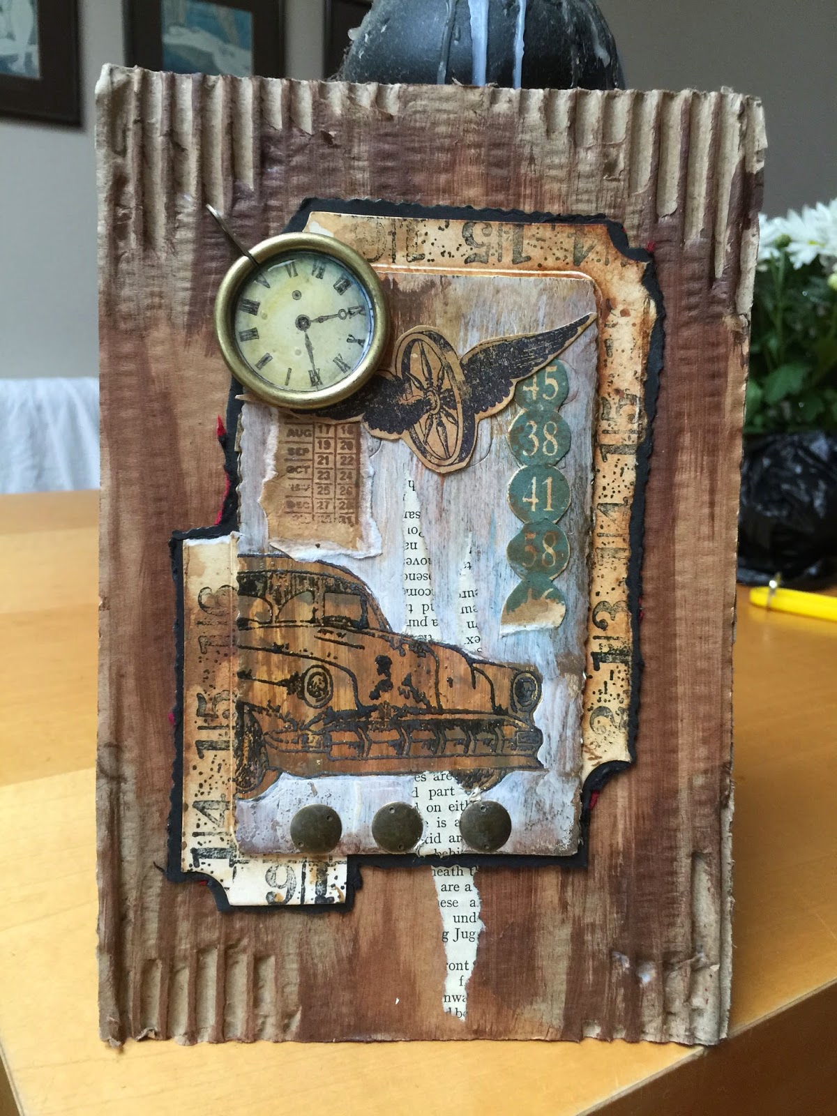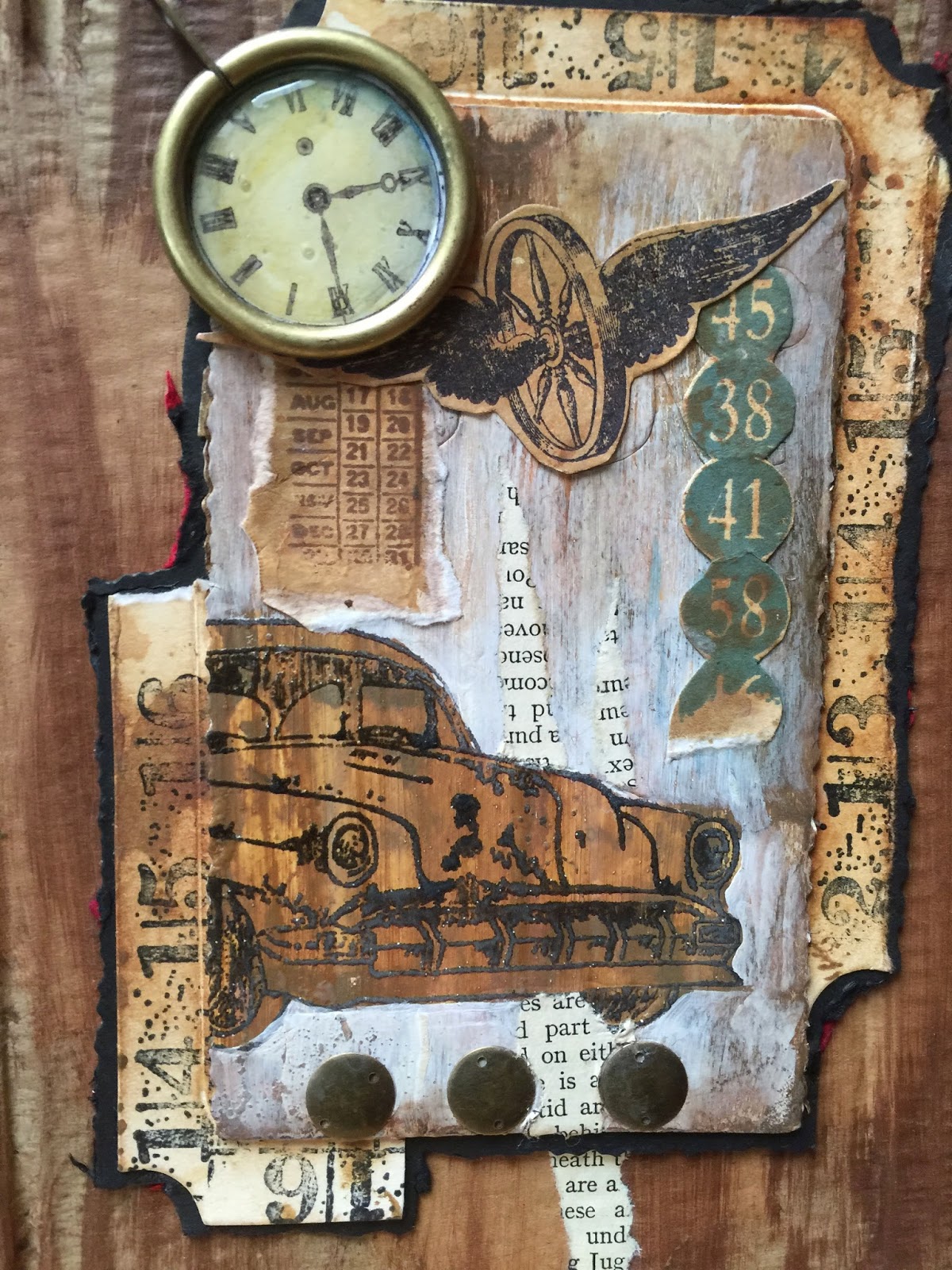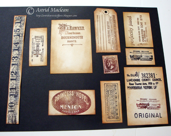 Vintage Linen Distress Ink and then stamped my chosen images in a mix of Jet Black, Coffee and Maroon