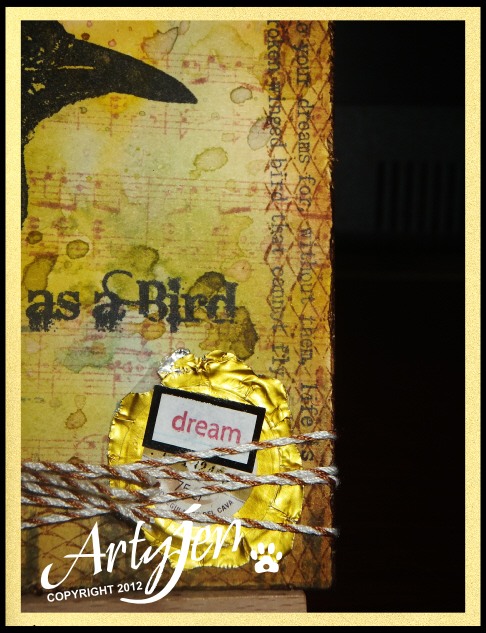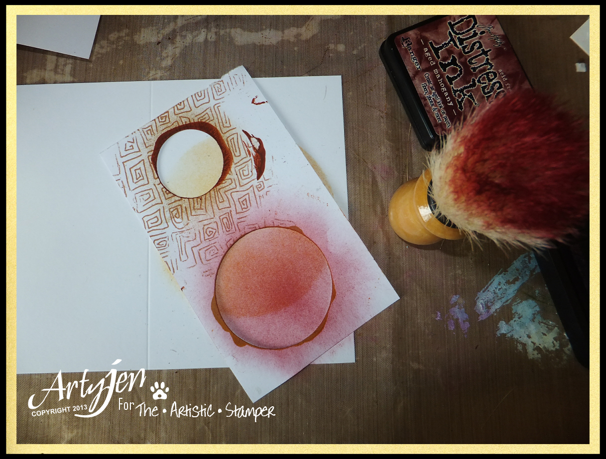5. Scuff up the edges and age with Distress Ink wild honey and a touch of walnut stain. Attach to the card base.
