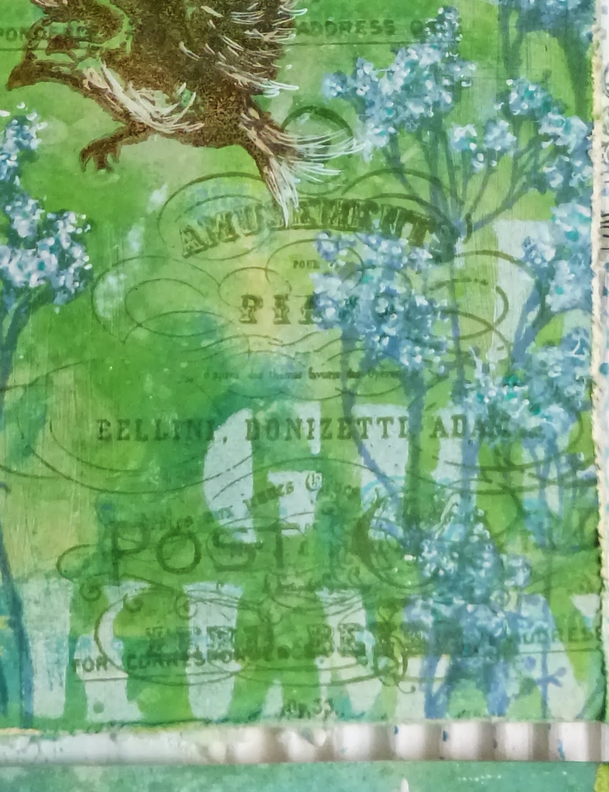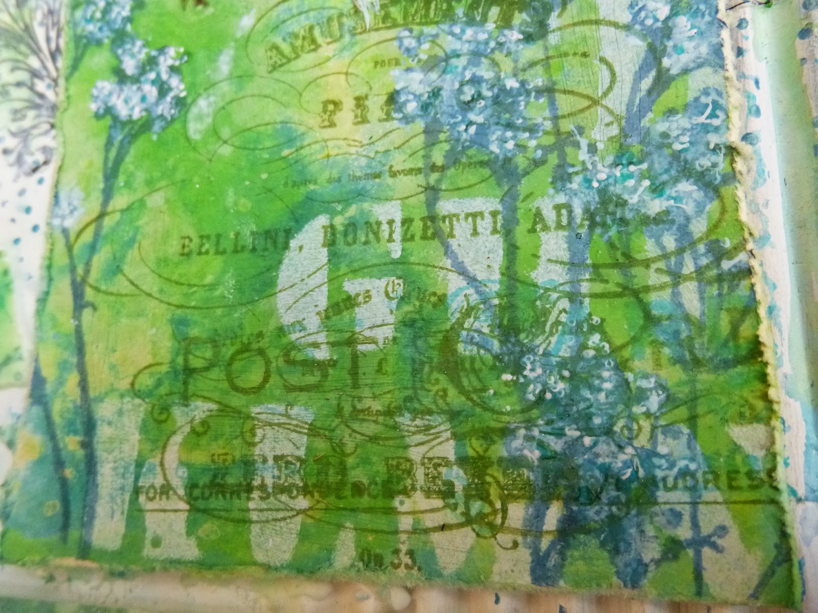 The final step with the tag was to add some texture stamping, for which I used the TH Postcard stamp and one of my favourite Pink Paislee music advertisement stamps from my stash.