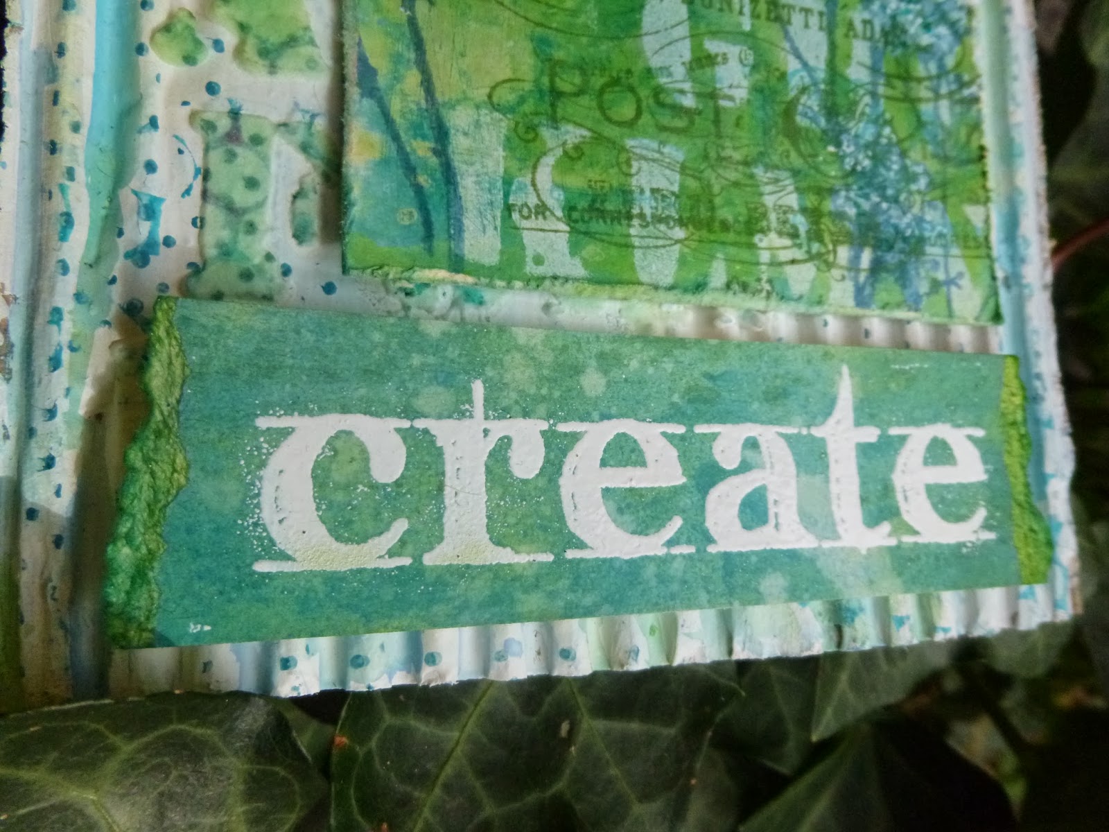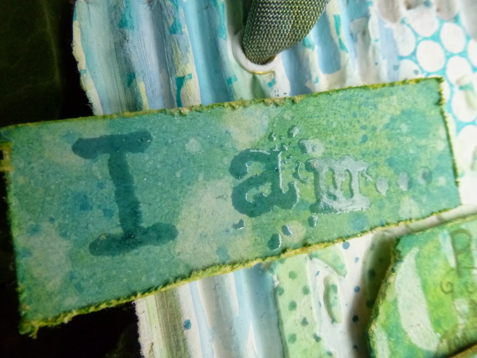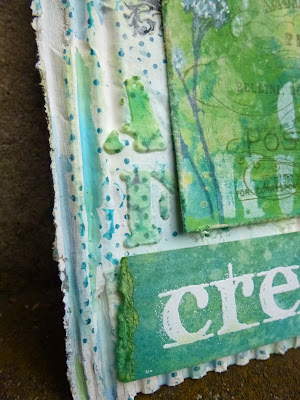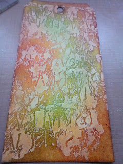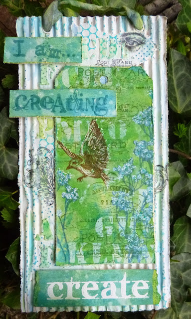 The words are stamped onto another tag that I'd done some wrinkle-free distress technique on - again with the combination of paints and stains.