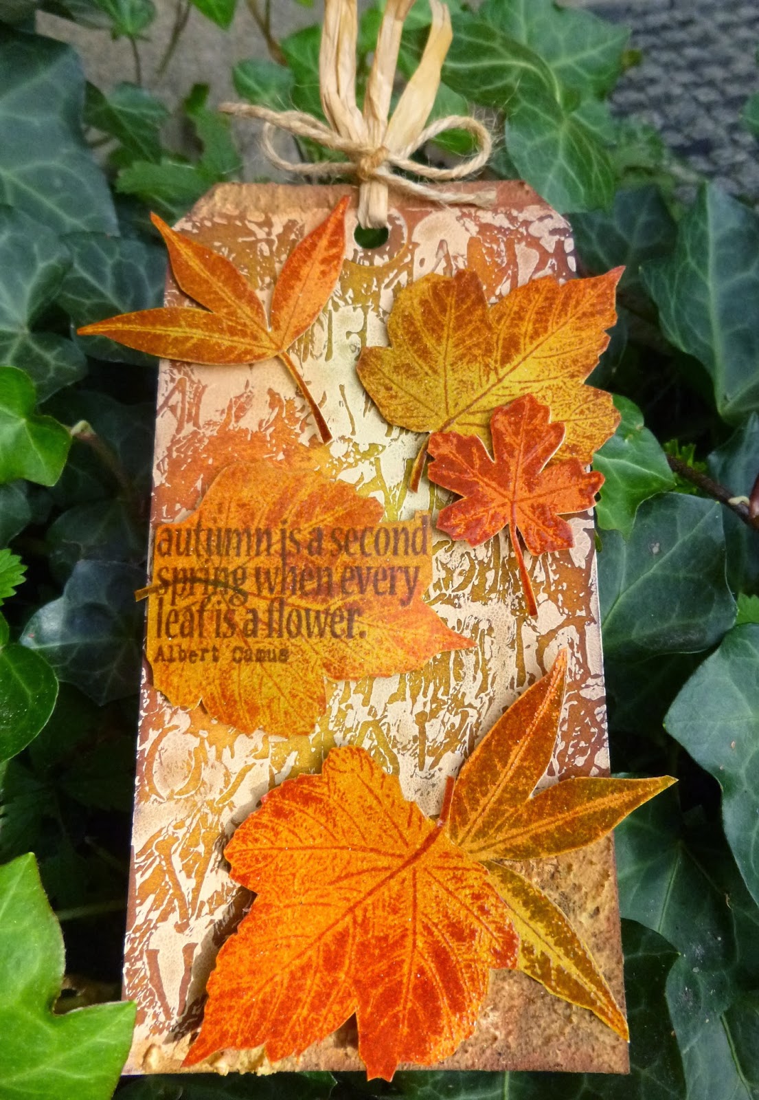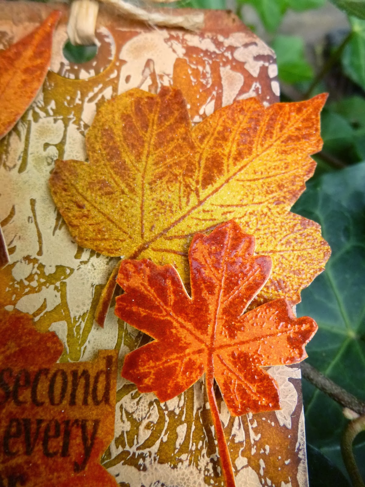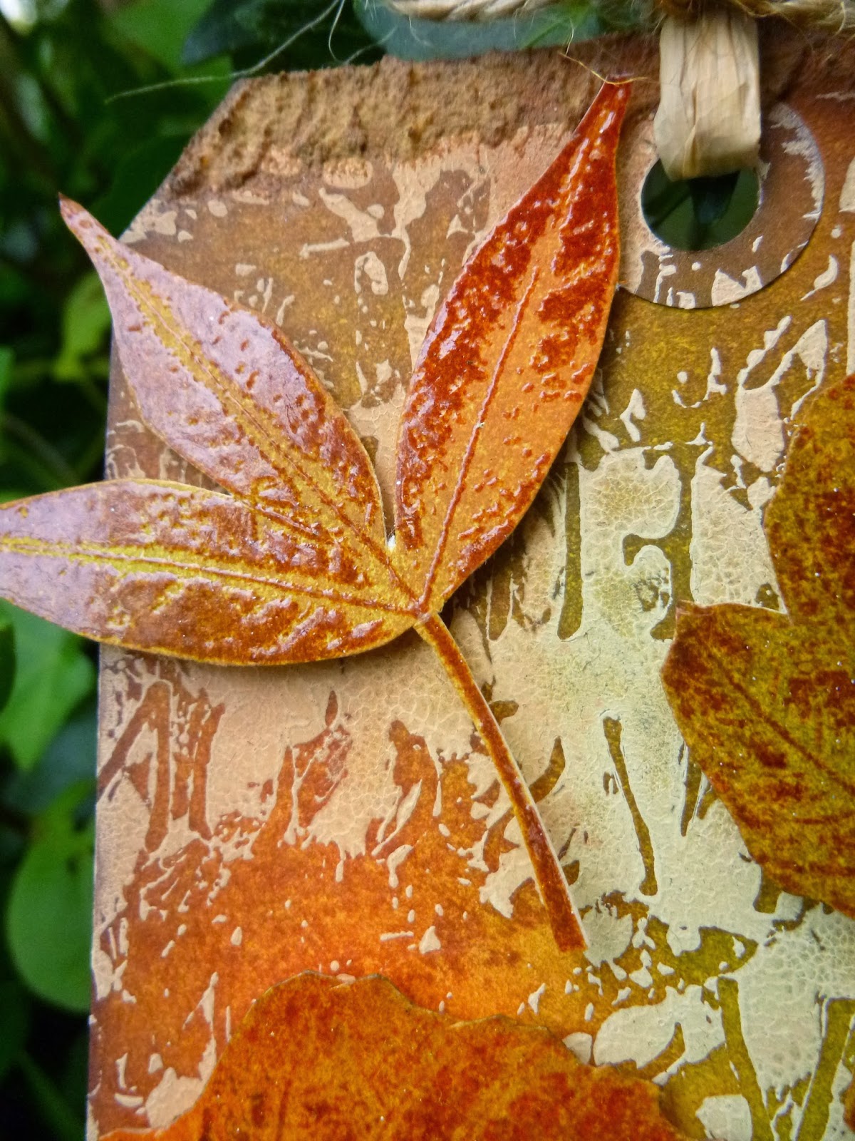The words are stamped onto another tag that I'd done some wrinkle-free distress technique on - again with the combination of paints and stains.