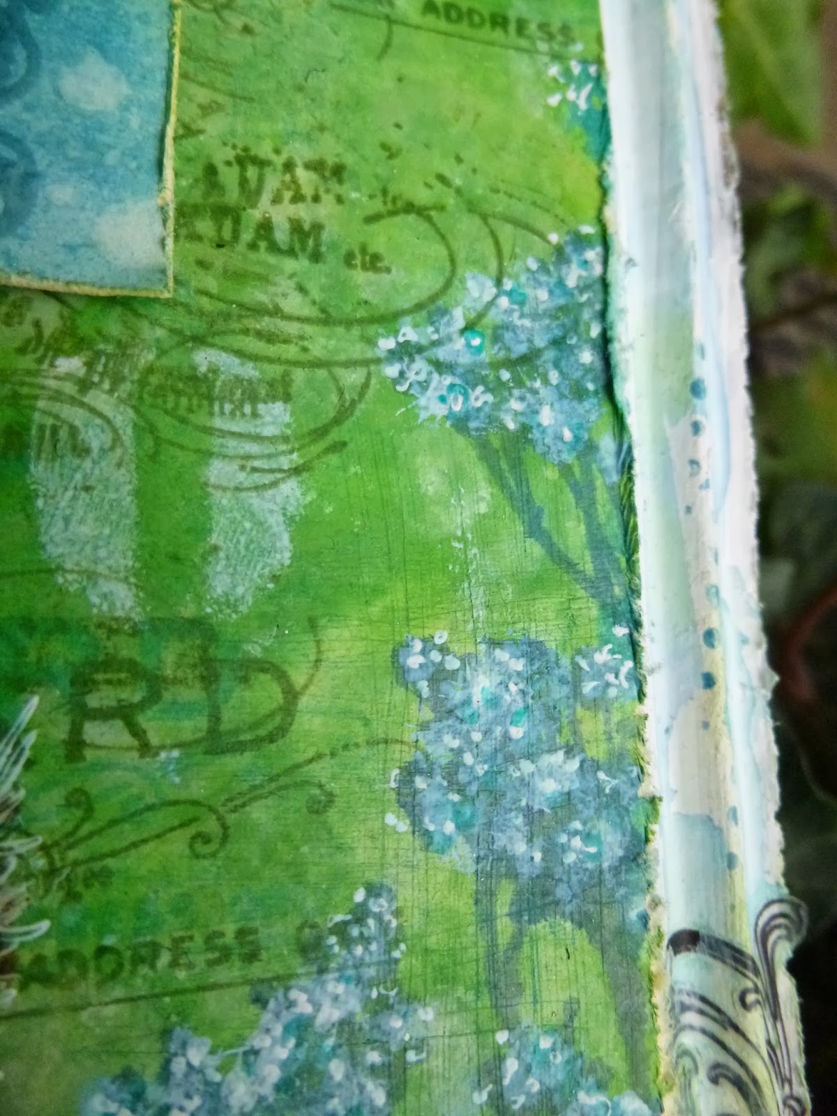 Because of the five-minute-flow-process, and the fact that my brain is really elsewhere at present, I'm afraid I haven't got any 'making-of' photos, but I'll show you some details and let you know approximately what I got up to as we go.
