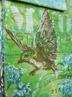 I stamped the Tim Holtz bird in Wendy Vecchi's Potting Soil, and used the white pen again to add highlights to the image.