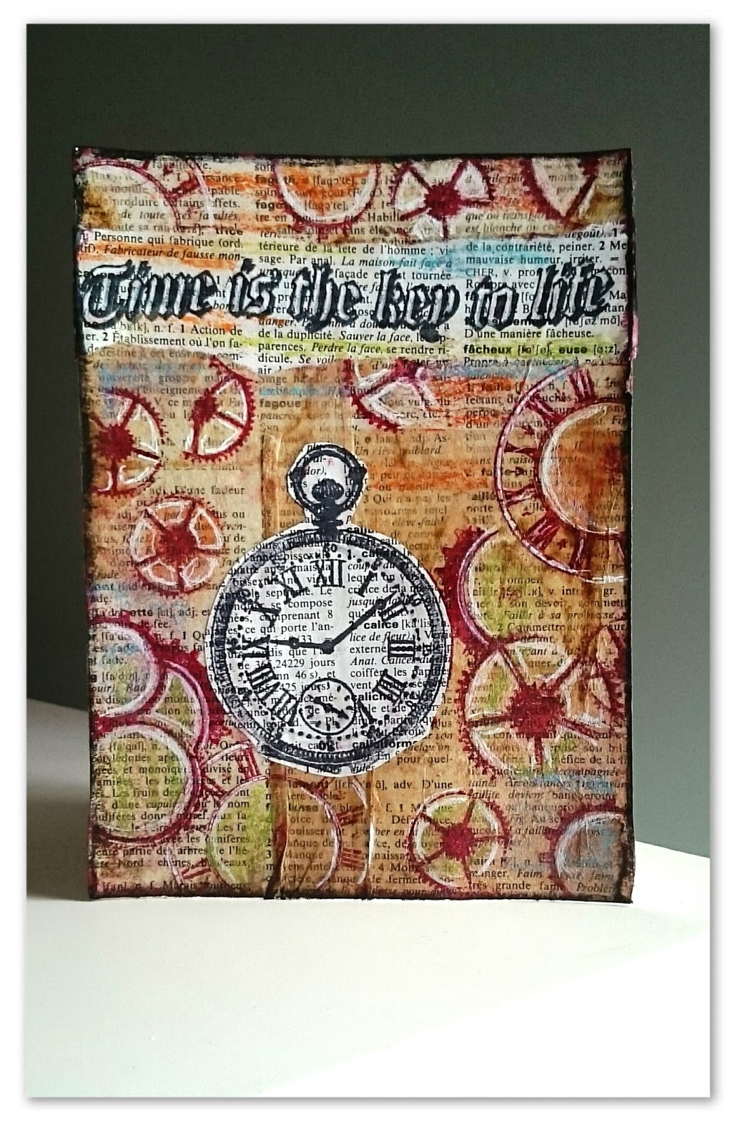 When dry, I have stamped the sentiment with Archival Inkpad - Black ink and hidden it with a paper to stamp the clock with Archival Inkpad-Cobalt