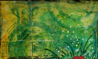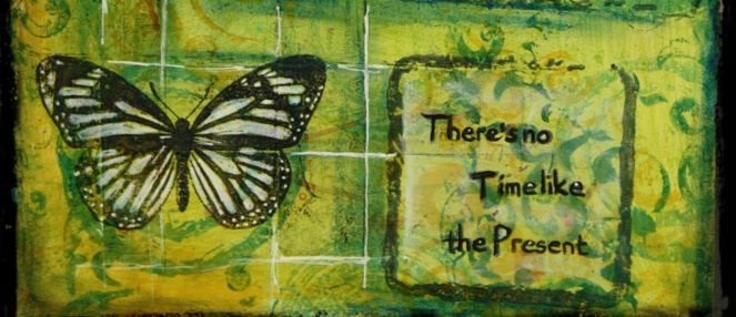 I cut the white card down to 3x2 inch rectangles for my pages and folded these in half. I then pushed them into Distress ink that I had spread onto my glass mat and sprayed with water.