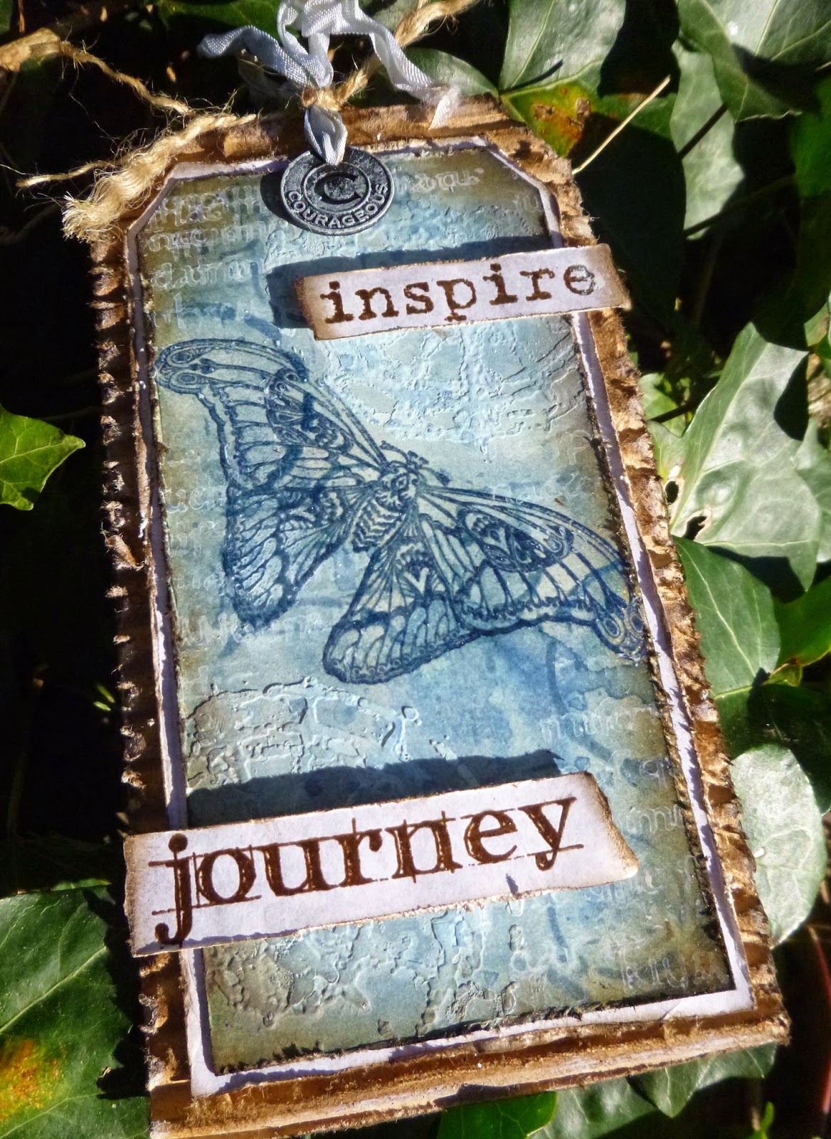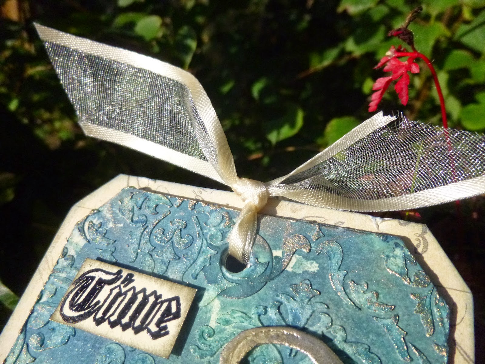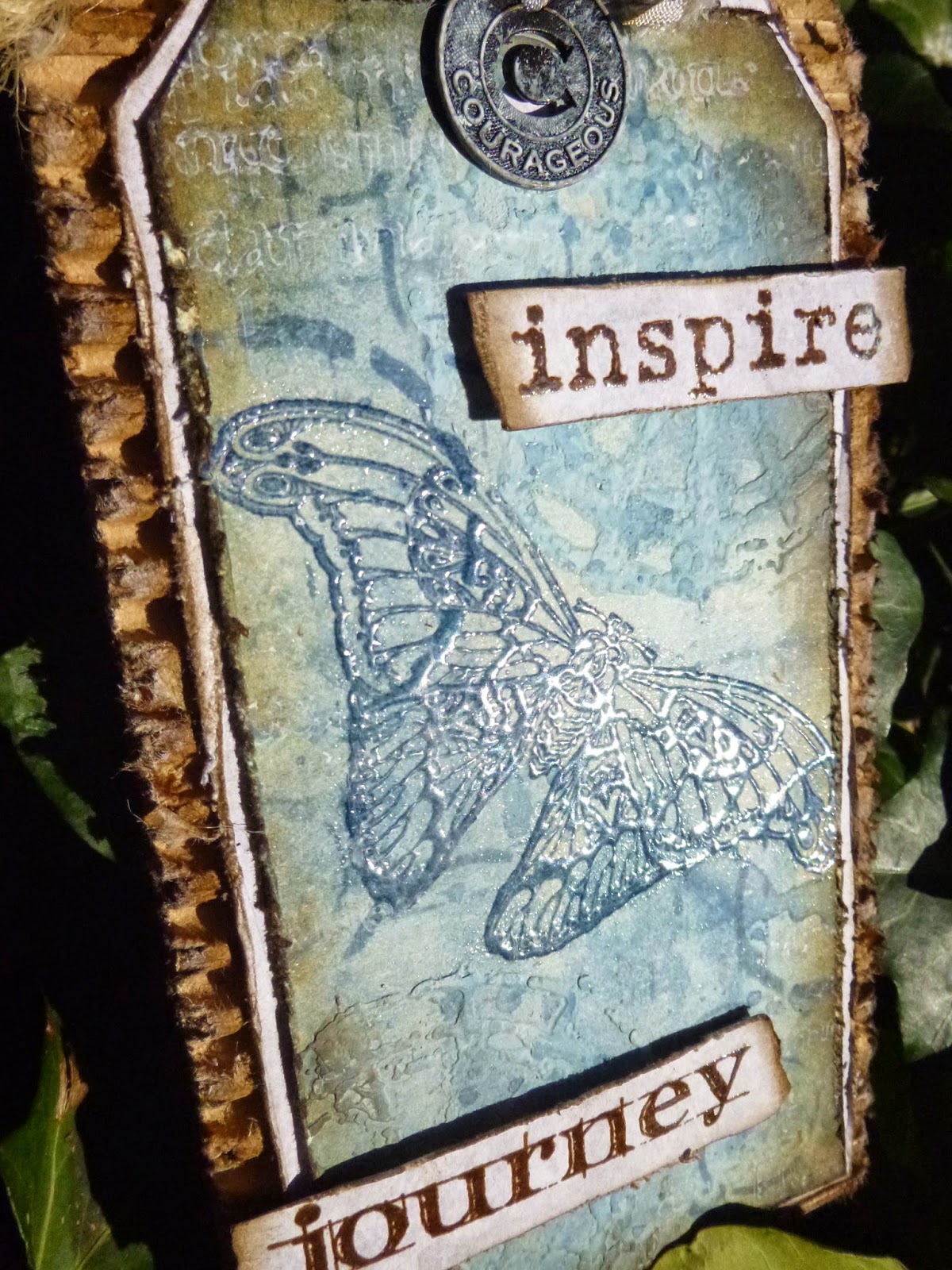 I had great fun with my metal pieces. The Idea-ology flower is altered with Distress Paint, while the skeleton leaves have had a dose of my Ten Seconds Verday Paint (weathered patinas, until now only really used on dollshouse work).