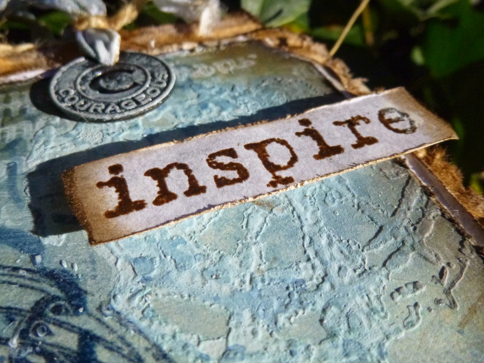 And I edged the page with Vintage Photo and Walnut Stain to pick up the rusty colours of the central layers, so we also have - at heart - the blues and browns of my winter pages, but transformed to a brighter version.