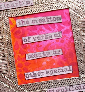 Once dry I edged all the pages with more ink and then stamped along one side of each page. The stamp in a long one so I made sure to stamp different sections onto the pages. I then glued the pages back to back to form the book/signature.