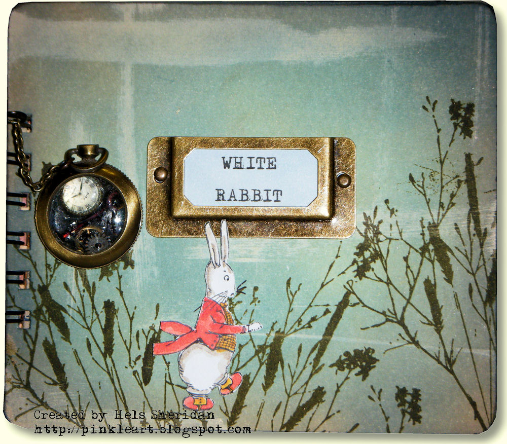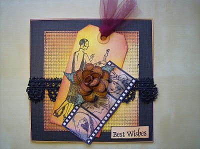 Is a diddy card... using the same principal of making a stripey background, but this time keeping it stripey... I stamped a mini sentiment from Tim Holtz collection and then added a border - with more Tim stamping on it... again in Archival ink.I stamped two of the
